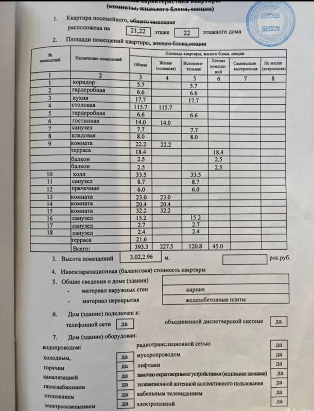 Имеется возможность стать первыми жильцами в лучших квартирах г. Донецка. По низу рыночной стоимости!!\nПродаются 2 объединенных элитных пентхауса на 21/22 этаже( с возможностью разделения на 2,3,4, квартиры и перепланировки) общей площадью 393,4 кв.м., а также кабинет на 23 этаже общей площадью 46,9 кв.м., и подземный гараж с готовым ремонтом площадью 24 кв.м.\nОсобенность квартиры в том что имеются 2 террасы на 21 этаже 55 кв.м., и на 22 этаже 65 кв.м с возможностью установки зоны барбекю и бассейна.\nНа 23 этаже (кабинет) имеется возможность установки солнечных панелей для организации автономного электропитания, накопительных водяных баков, сбора дождевой воды и накопления из систем центрального водоснабжения, что позволяет сделать квартиры полностью автономными.\nСтроительные работы частично завершены.\nДанная недвижимость расположена в самом центре города Донецка ориентир площадь Ленина/Филармония. Лучшая локация г. Донецка!\nДом кирпичный, одноподъездный, потолки 3.10 м. консьерж, 2 лифта, предусмотрены места для парковки автомобилей.\nОбщая площадь составляет 393,3 кв.м (2 пентхауса) + 46,9 кв.м. (кабинет) + 24 кв.м. (подземный гараж) + в общую площадь входят 2 террасы площадью 120 кв.м.(коэффициент 1/3). Итого 544,2 кв.м за 22.500.000 (ориентированная стоимость за квадратный метр с террасами, балконами, гаражом и кабинетом составляет 40.000 российских рублей за квадратный метр!!\nСобственник один (первичный) документы готовы к сделке (выписка Росреестр, право собственности, техпаспорт).Скрыть