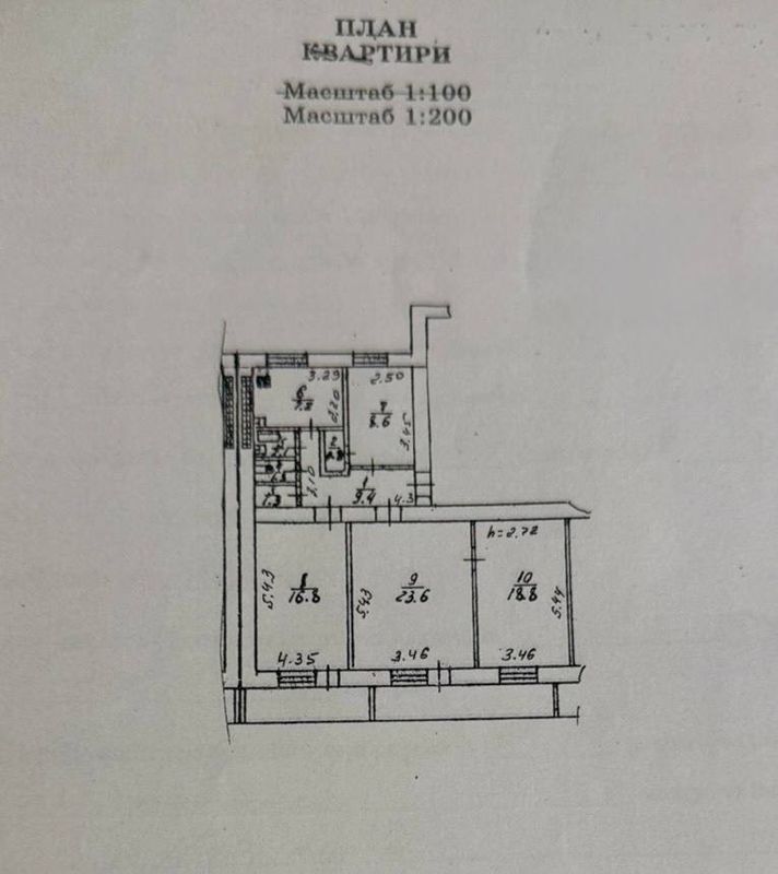 Высота потолков 2.72 м.