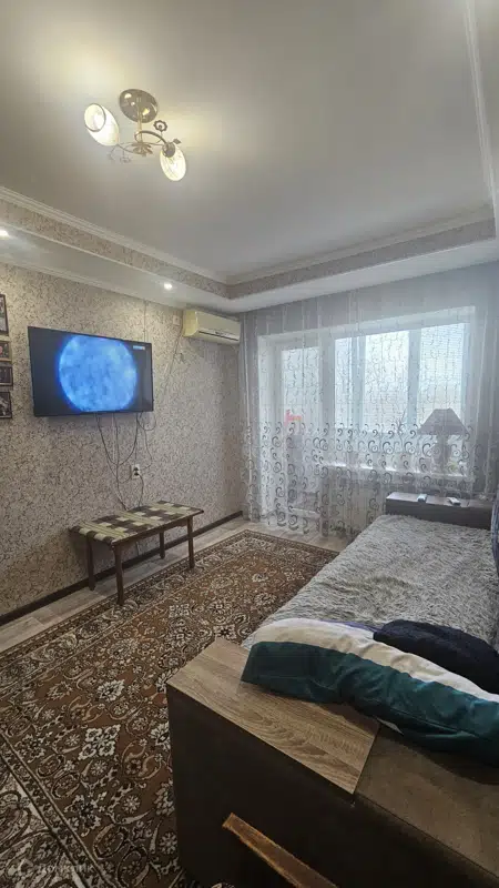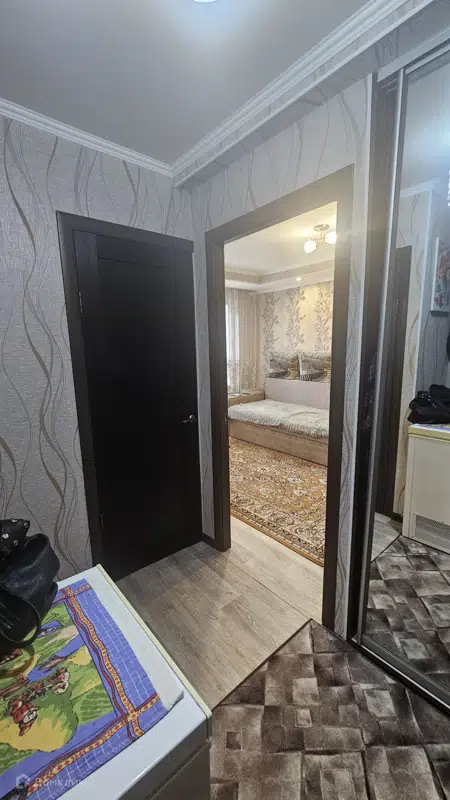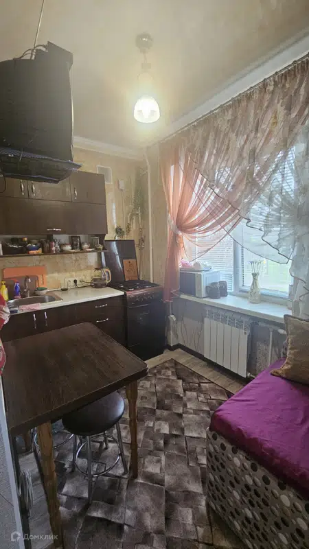 Квартира на третьем этаже пятиэтажного дома, площадь — 33,4 кв. м. Недавно выполнен ремонт, вся мебель и бытовая техника остаются.
