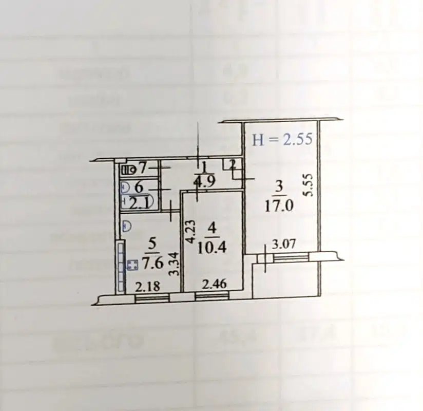 Площадь: 45,4 м2