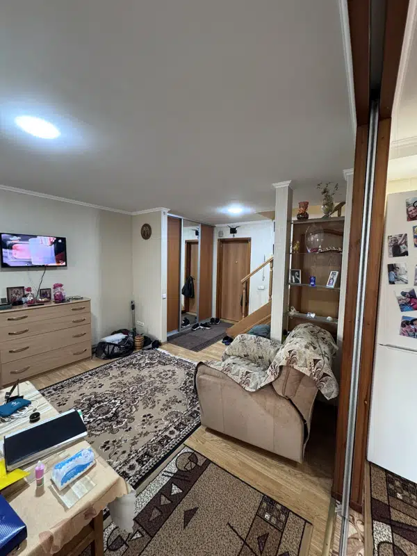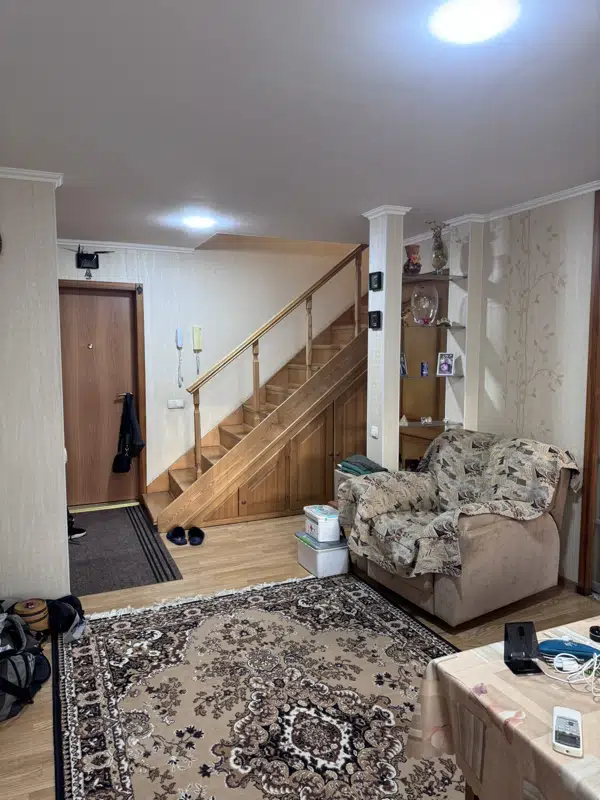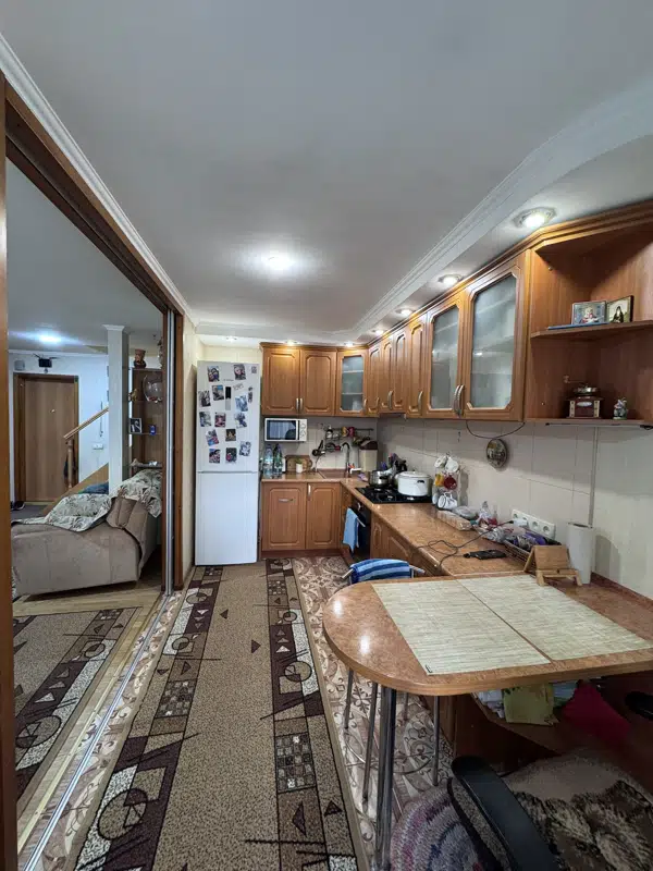 Продаётся уютная трехкомнатная квартира в 2х уровнях, общей площадью 77квадратных метра на четвёртом этаже девятиэтажного дома по адресу: город Донецк, улица Карпинского, 25. Жилая площадь составляет комфортные 46квадратных метра, а кухня занимает 8 квадратных метров, предоставляя достаточно места как для приготовления пищи, так и для семейных ужинов.