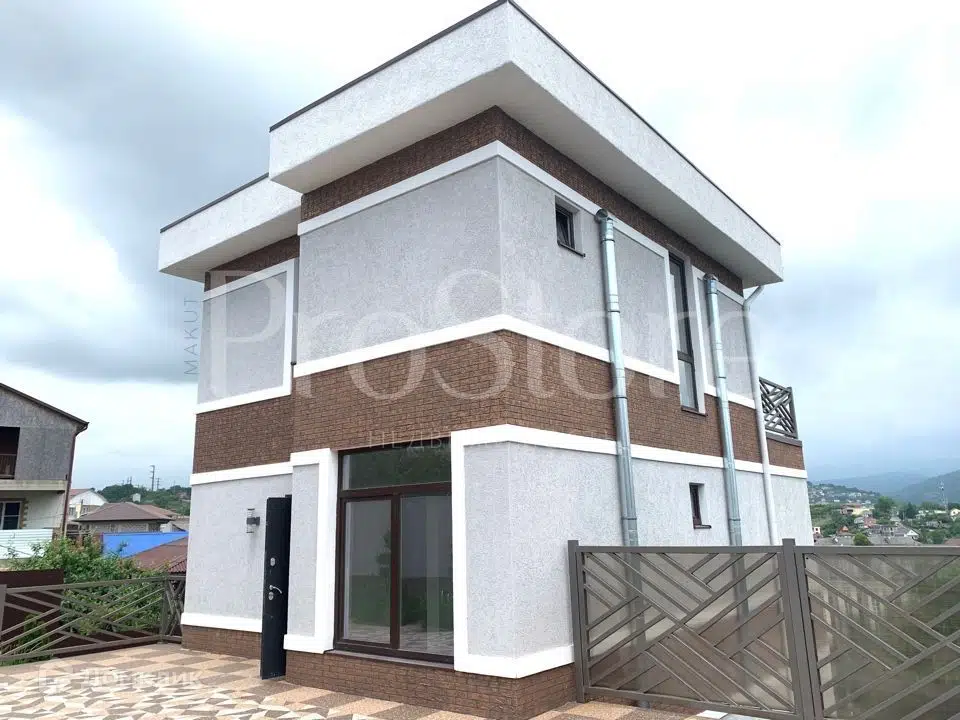 Хайтек дом с панорамным видом на горы, с террасами на каждом этаже! Можно эксплуатировать кровлю. 3 этажа, предчистовая отделка, автоматические ворота. Озеленение: на участке дуб, фейхоа, пальмы, хурма и др. растения и деревья.