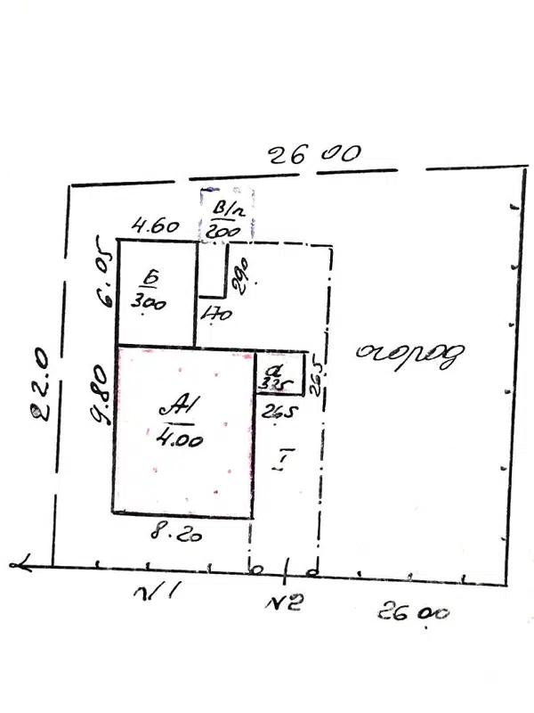 На территории участка имеется: гараж, небольшой сарай, плодовые растения.