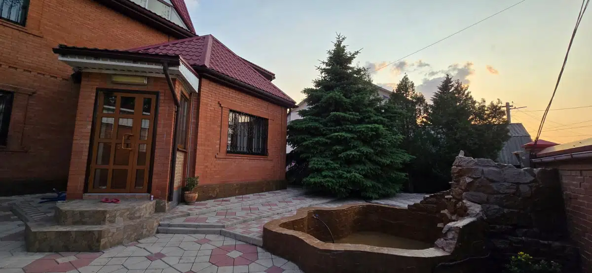 На участке 7 соток ландшафтный дизайн, газон, два бассейна, фруктовый сад, гараж со смотровой ямой.