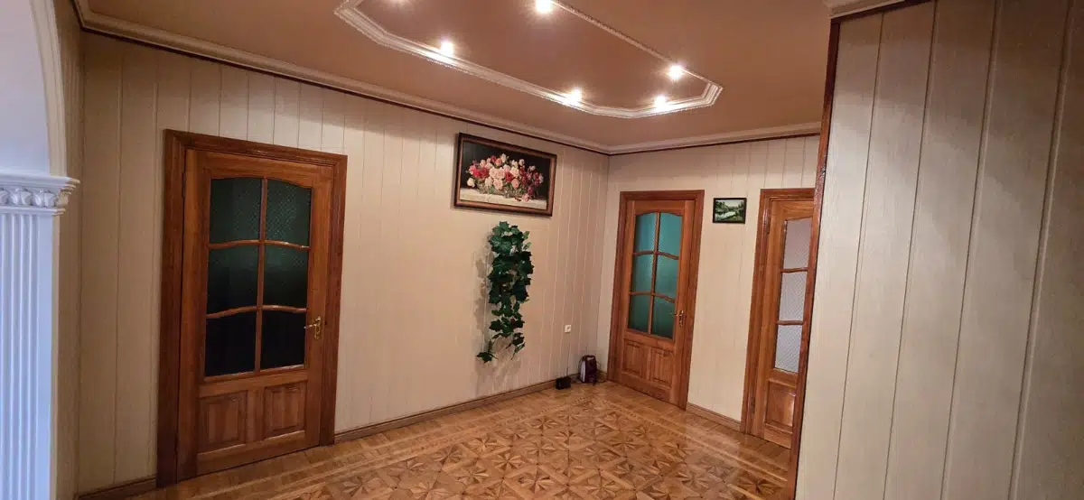 В доме выполнен качественный ремонт с использованием натуральных материалов, межкомнатные двери и окна из массива дерева, решетки на окнах, натуральный паркет. Все коммуникации центральные, отопление индивидуальное газовое. Большой подвал в доме, где установлена система бесперебойного водоснабжения на 1000л. В доме зимой тепло, в жару - прохладно.