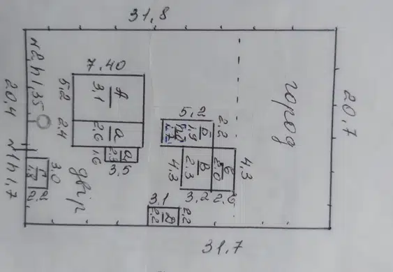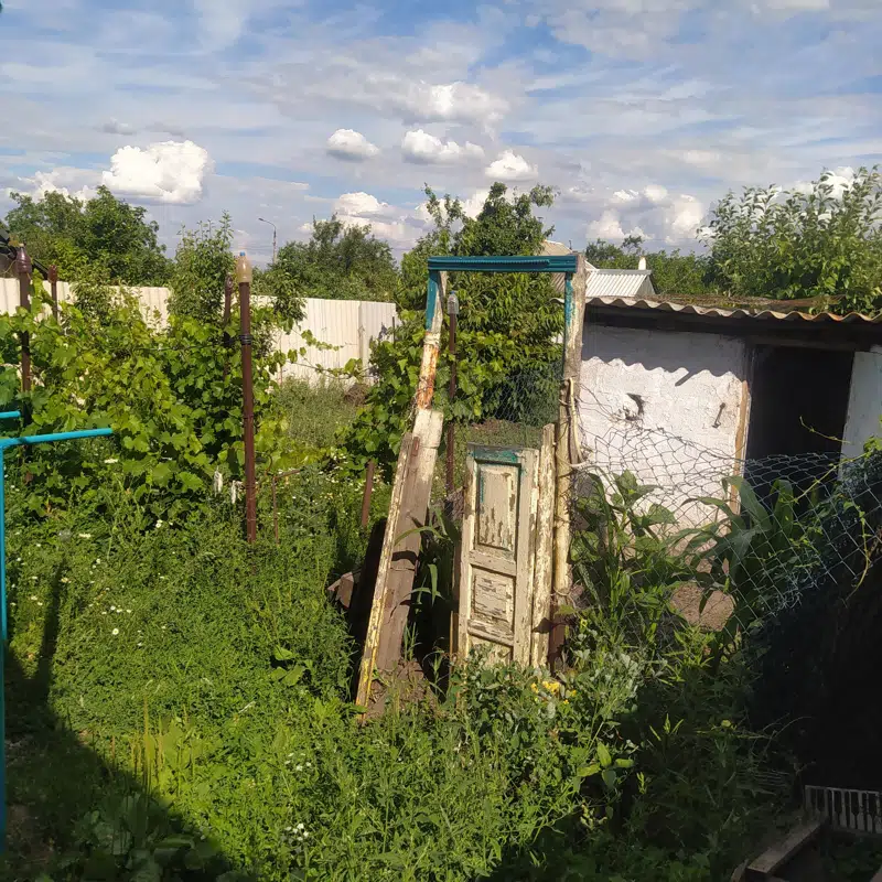 На участке имеются фруктовые деревья и виноградник, участок полностью огражден шиферным забором.