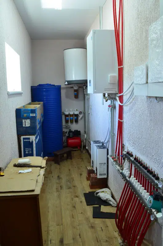 - котельная комната: электрокотел,трехфазный счетчик+стабилизатор напряжения на каждую фазу.
