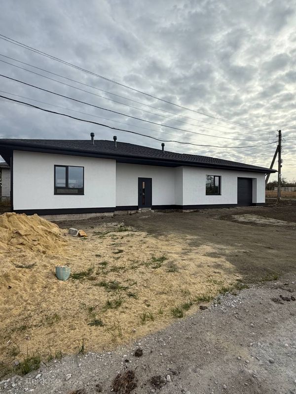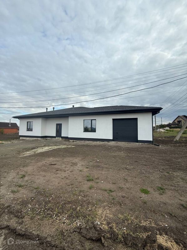 Площадью 140 квадратных метров на участке 9 соток (ИЖС). В доме предусмотрен гараж на один автомобиль, выполнена предчистовая отделка: уложен водяной теплый пол, залита чистовая стяжка, оштукатурены стены, утеплено перекрытие по деревянным балкам минватой 200 мм, стены утеплены минватой 100 мм. Установлены окна и входная дверь, предусмотрены панорамные окна, три изолированные комнаты и возможность завершить ремонт под ключ.