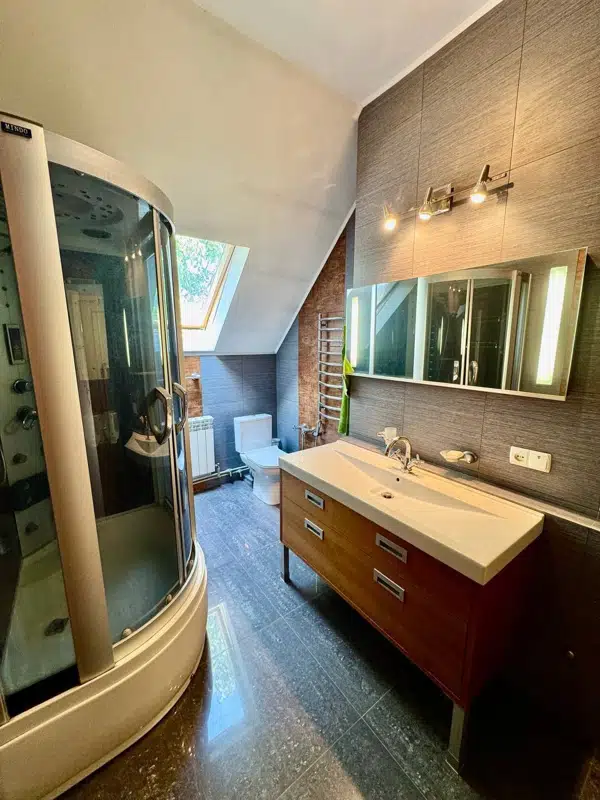 Подземный этаж: бильярдная,сауна с джакузи, душевая,санузел,котельная.