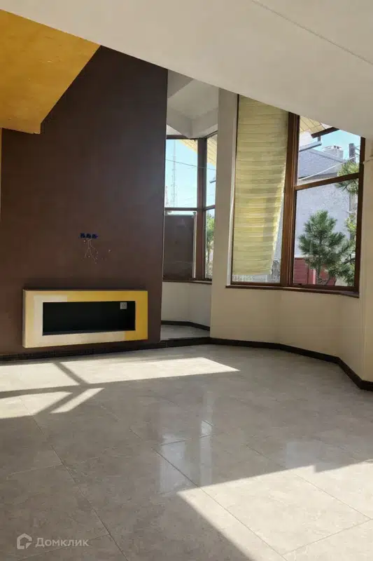 Общая площадь дома 184,4 квадратных метра. Планировка включает три изолированные жилые комнаты, просторную кухню, объединенную с гостиной, а также два санузла. Дом подключен к центральной канализации. Состояние дома требует восстановления, что дает возможность новому владельцу создать комфортное пространство по своему вкусу.