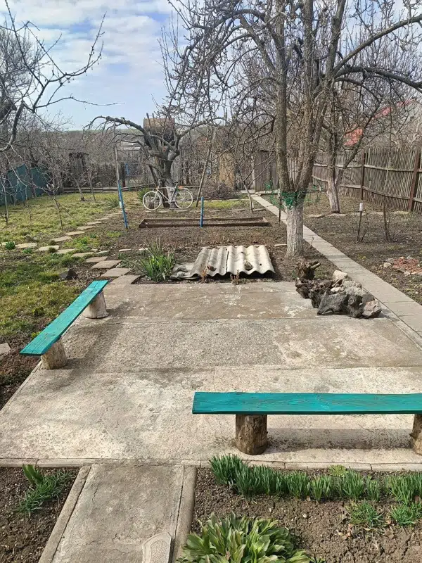 • Участок 5 соток, огорожен, во дворе плитка, есть заезд для машины