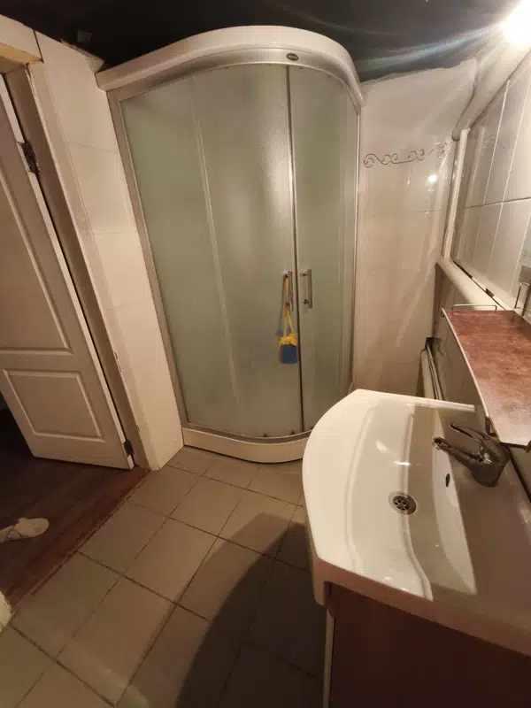 В ванной комнате душевая кабинка, есть бойлер, унитаз.