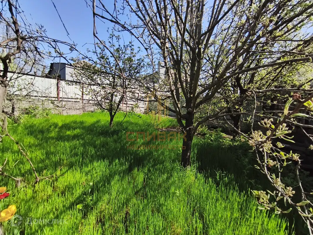 На приусадебном участке есть плодовые деревья и газон.