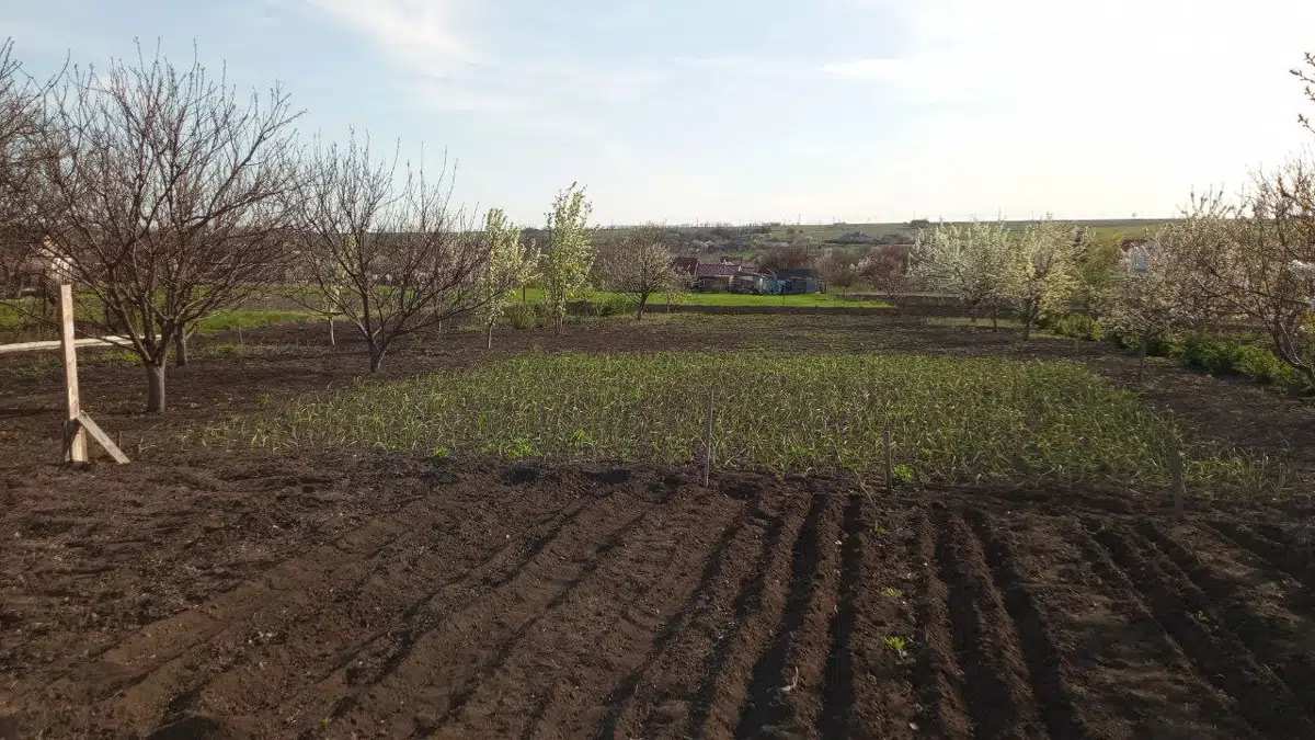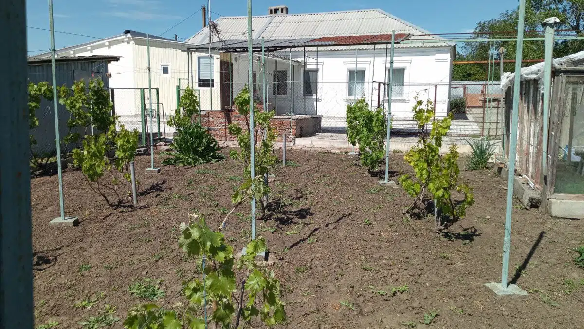 Площадь участка - 29 соток, есть большой молодой сад (50+ деревьев, кустарники, виноград и др.) Два заезда, гараж, двор огражден, терраса, вольер, мангал, два внешних источника воды (колодец+ скважина), различные хозпостройки из дерева, участок со всех сторон ограничен забором.