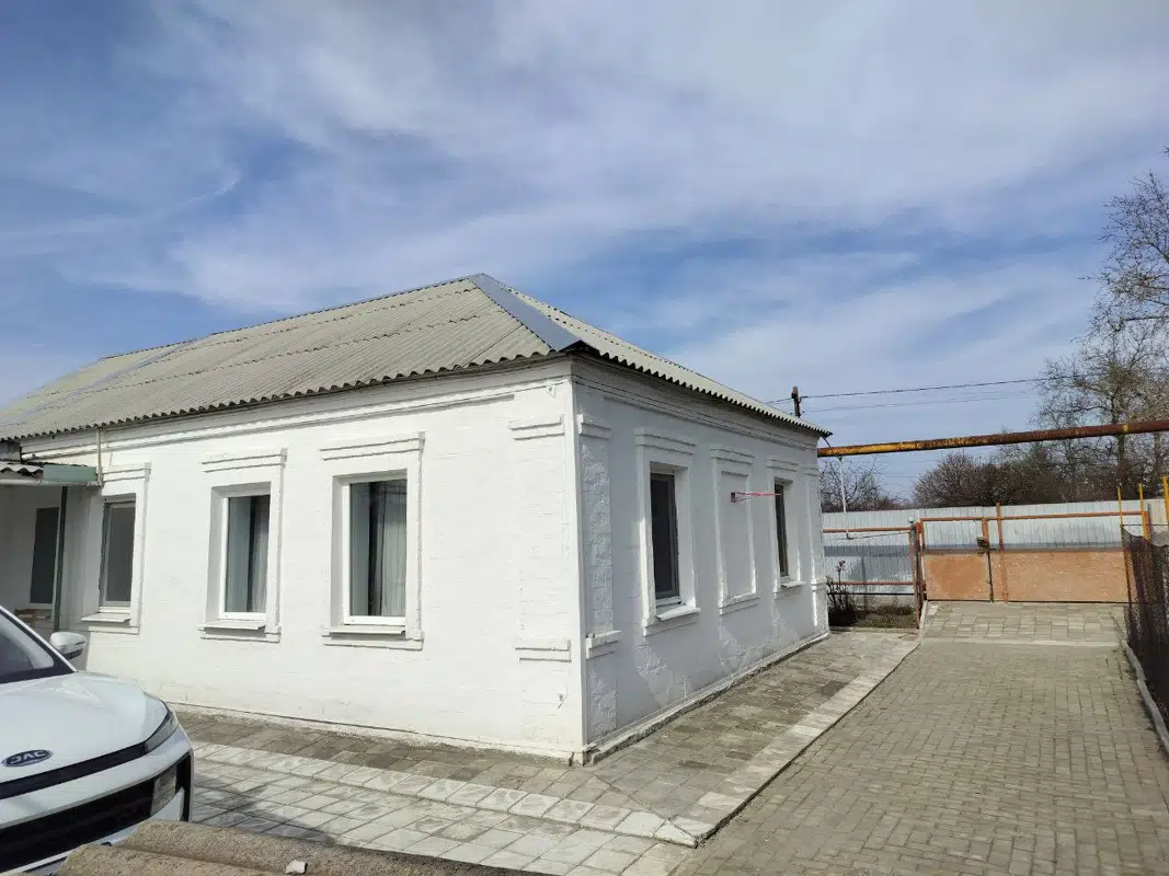 Месторасположение - недалеко от центра Мангуша, оживленная асфальтированная улица, магазины, школа, стадион, больница - все рядом, в пределах 1 км.