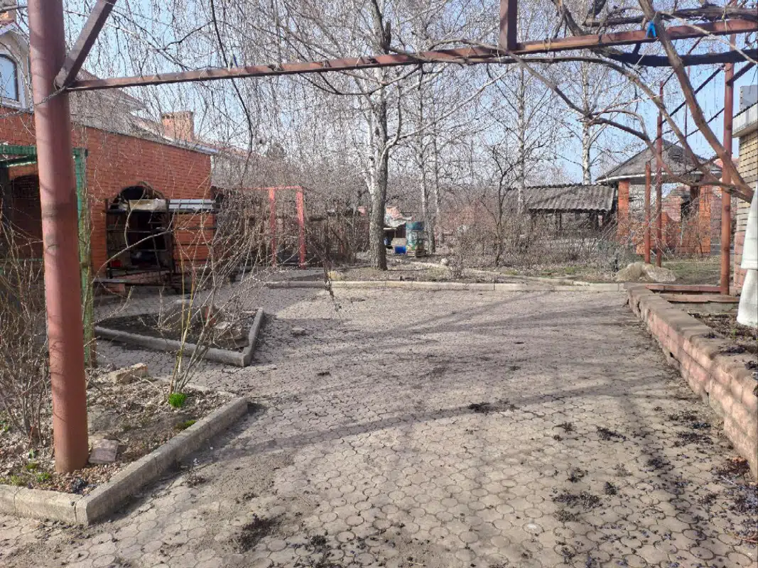 Земельный участок 0,3 га прямоугольной формы, с размерами 37,5х80 метров. Выходит на проезжую часть с асфальтированным покрытием. С трех сторон окружен соседними участками с высоким забором (по одной длинной стороне все 80 метров вообще кирпичная стена высотой 4 метра). 40% участка занимает дворовая часть с домом и хозяйственными постройками, 60% - огородная часть с садом и виноградником (большое количество кустов винодельных сортов винограда). На территории огородной части участка есть возможность постройки дома (есть разрешение). В дворовой части расположены: дом, площадью 290м2 и дополнительный пристроенный гараж; хоз. блок 99м2; зона камина с беседкой; детская зона с песчаным покрытием; теплица; дополнительные мелкие хозяйственные постройки (3 шт); отдельно стоящий подземный погреб; колодец; дорожки и площадки, выложенные ФЭМ плиткой.