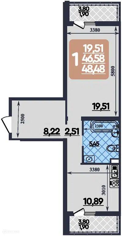 48,5 м²