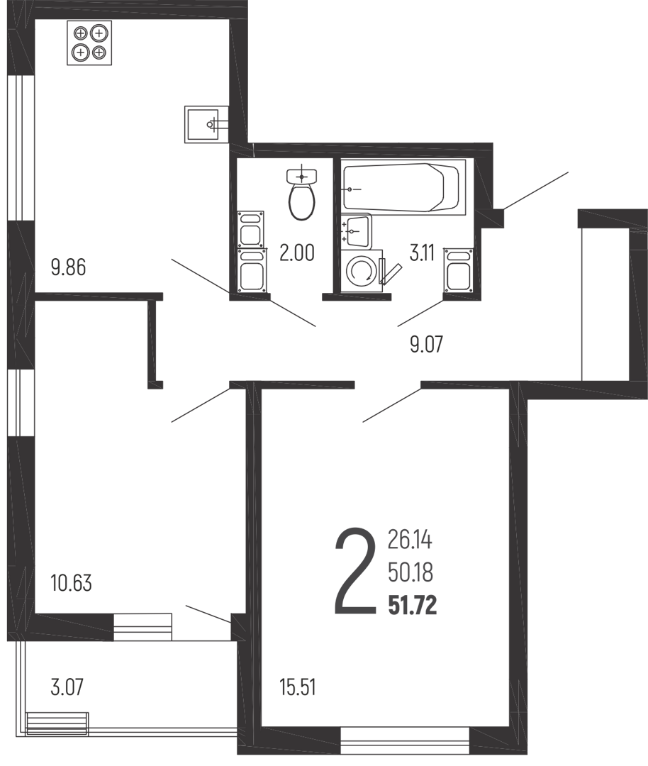2-комн. квартира, 51,7 м², 5/14 эт.