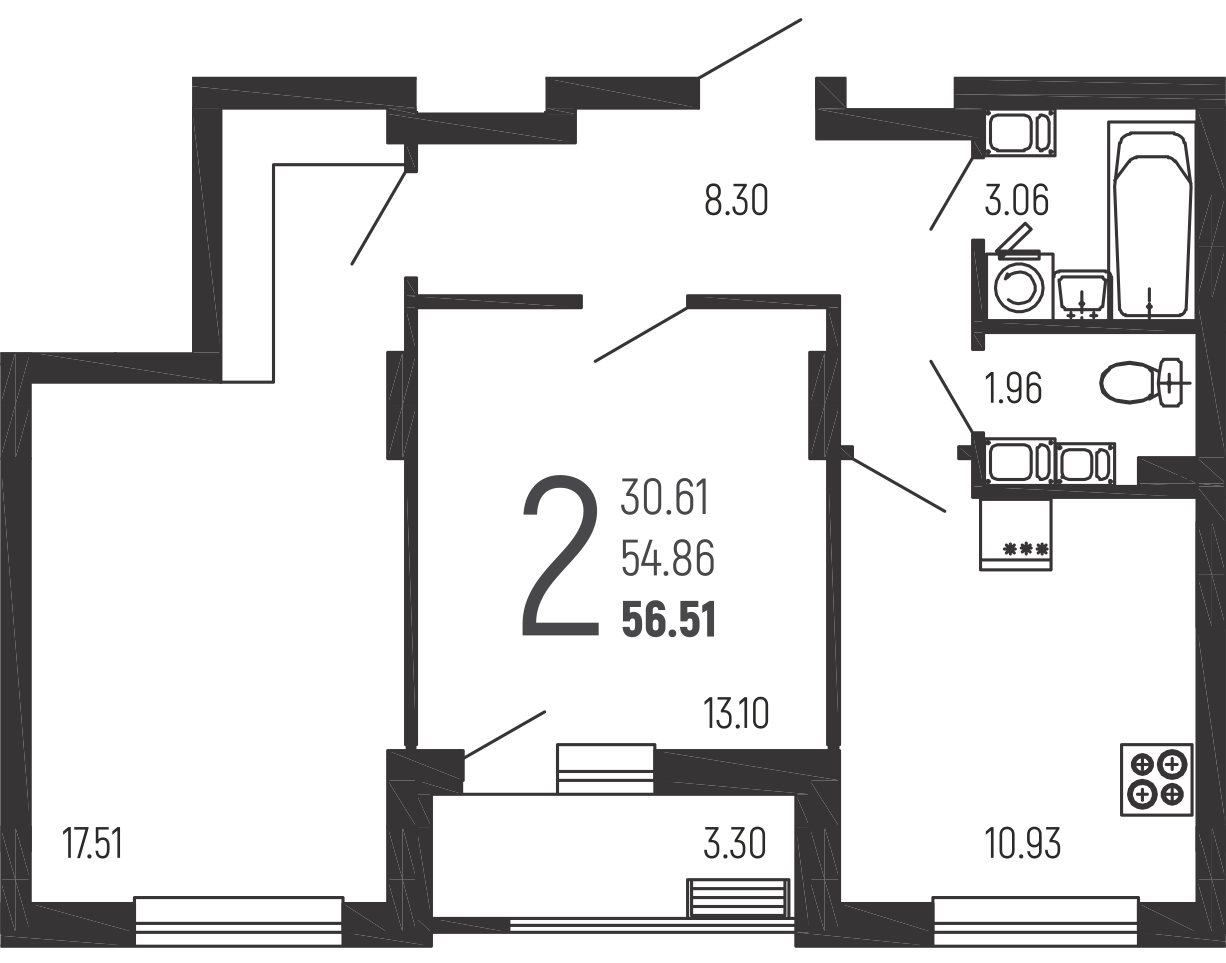 2-комн. квартира, 56,5 м², 10/14 эт.