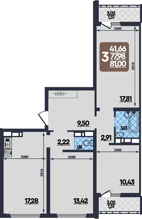 81 м² • 3/9 этаж