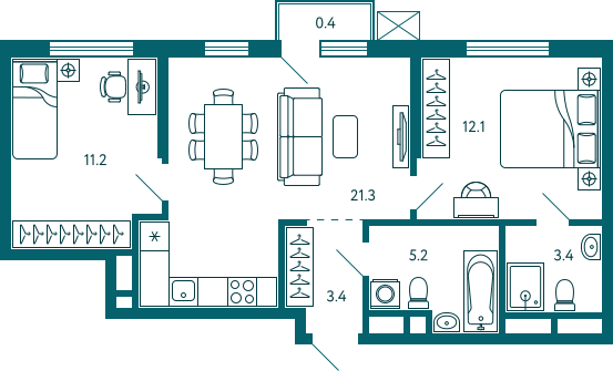 38,6 м²