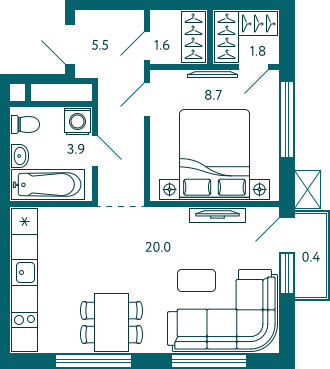 42,1 м²