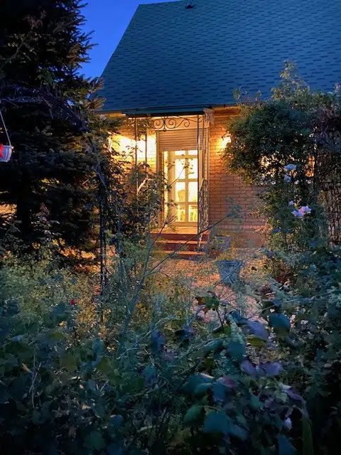 Райский Уголок: Участок - это настоящий сад! Здесь вы найдете сад с плодовыми деревьями, еловую аллею, виноградник, земляничную поляну, лавандовые дорожки, кусты крыжовника, черной и белой смородины, зону релакса и потрясающие клумбы с розами (150 кустов) и весенними цветами