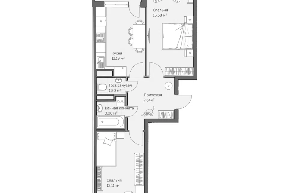 Наличие раздельного санузла добавляет удобства в повседневное использование.