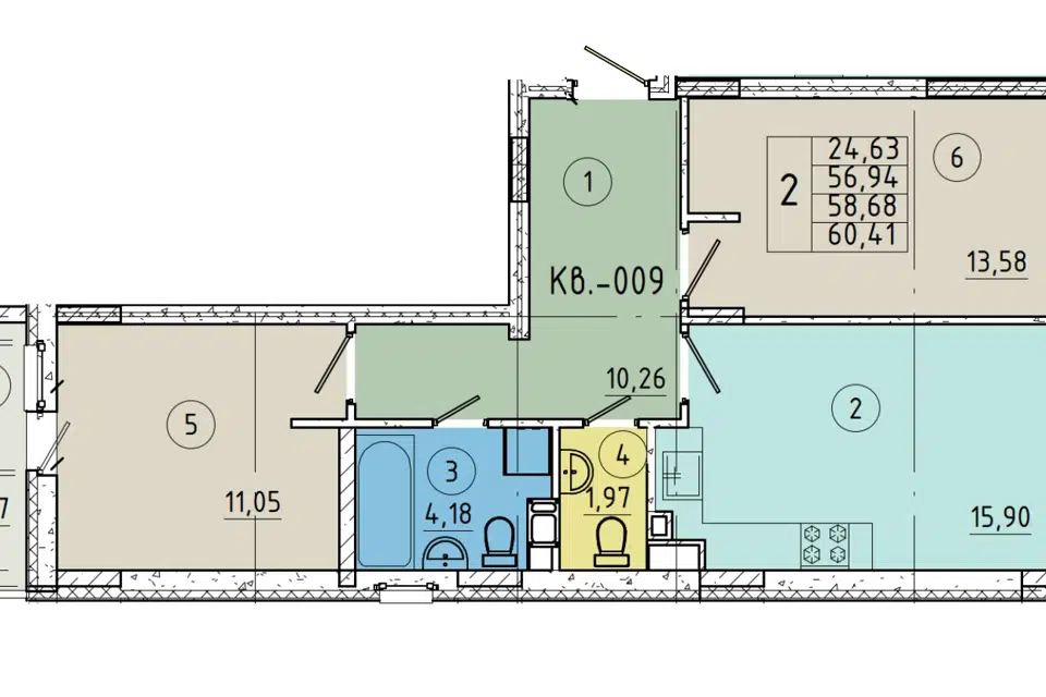 - Общая площадь: 56,9 кв.м.