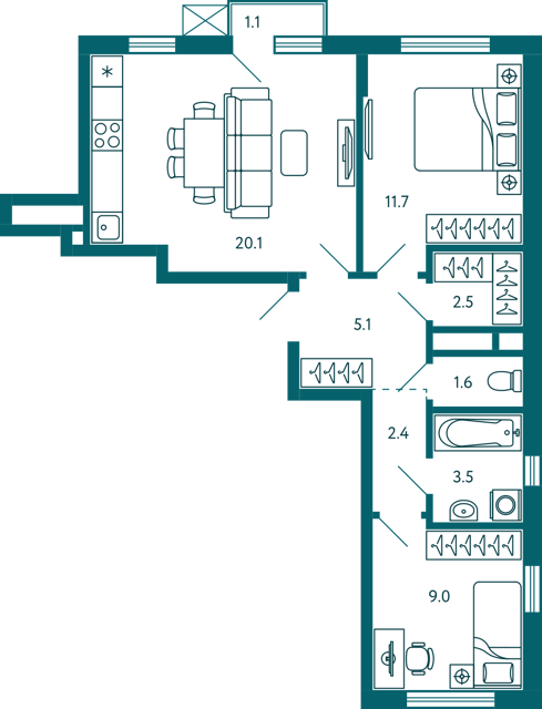 ✅Общая площадь - 63 м²
