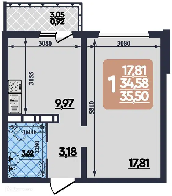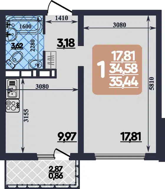 Совмещенный санузел обеспечивает дополнительное удобство и экономию пространства.