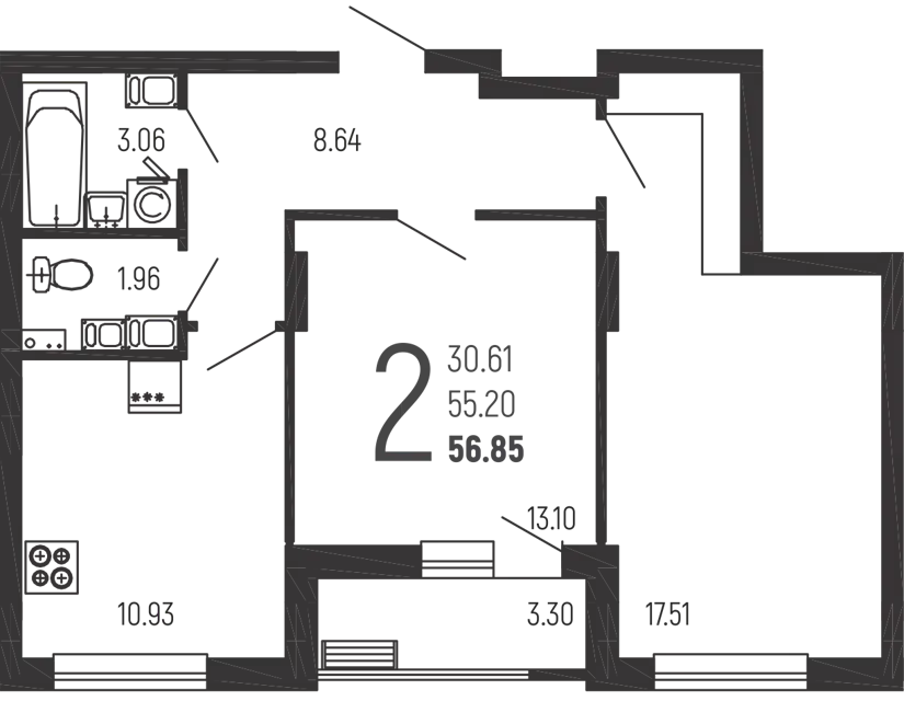 💥Общая площадь 64кв.м.