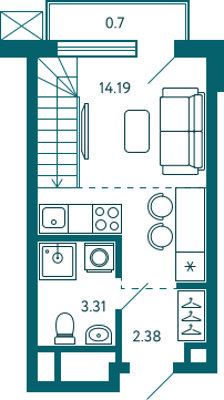 | 🟢 Площадь | от 17 до 22 м2. |