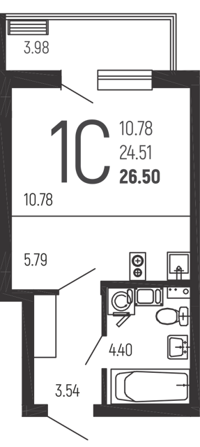 - Общая площадь – 49,9 кв. м.