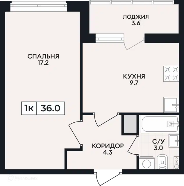 Общая площадь составляет 36,2 квадратных метра, санузел совмещённый.