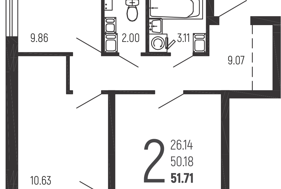 | 🟢 Площадь | от 50 до 66 м2. |