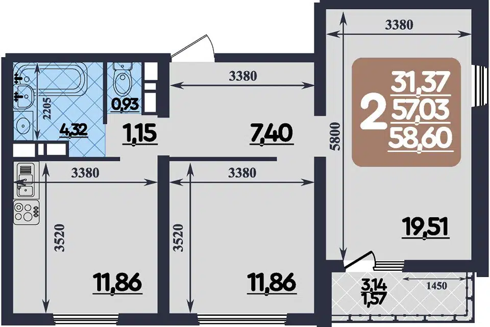 | 🟢 Площадь | от 35 до 82 м2. |