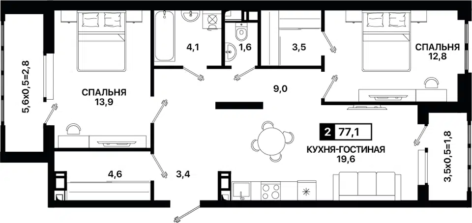 🔑 47 м2 (32,2 м2 - жилая)