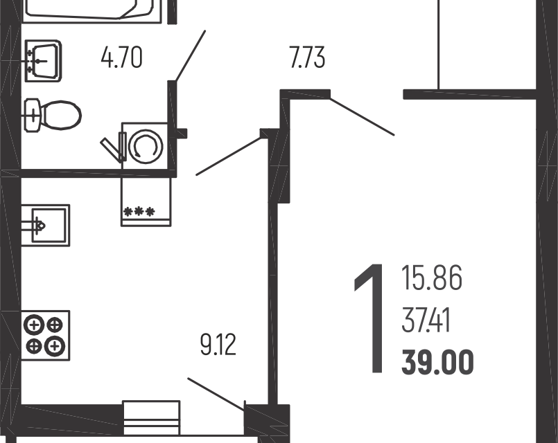 Общая площадь составляет 36,2 квадратных метра, санузел совмещённый.
