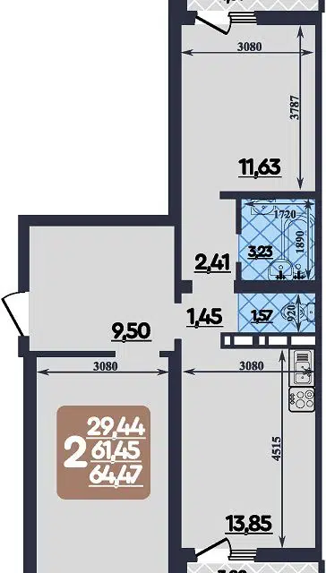 | 🟢 Площадь | от 29 до 81 м2. |