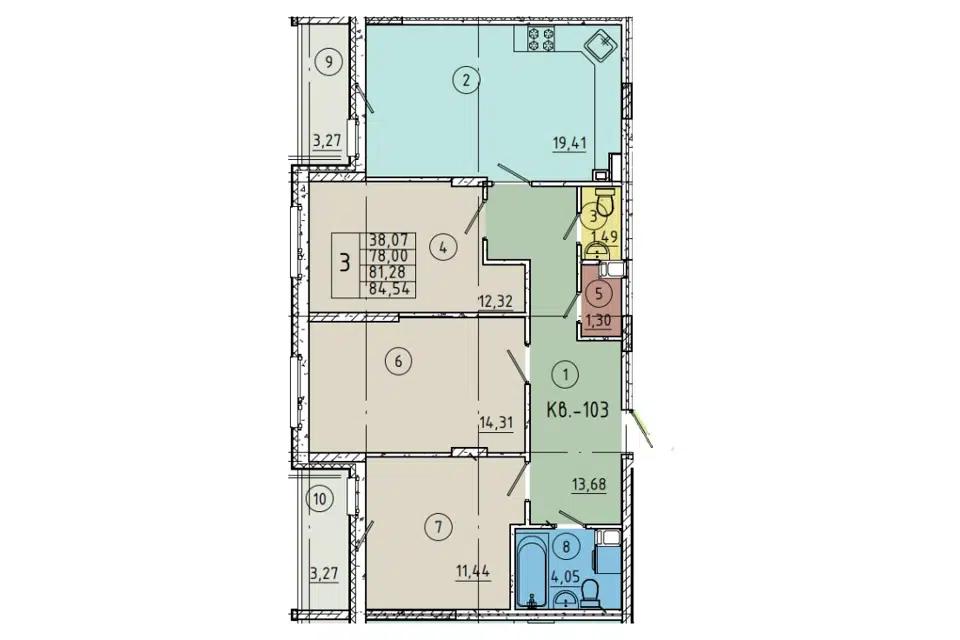 | 🟢 Площадь | от 58 до 81 м2. |