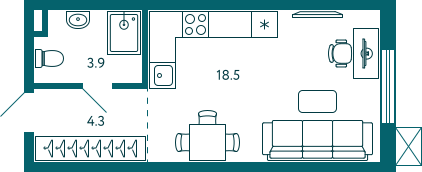 | 🟢 Площадь | от 20 до 26 м2. |
