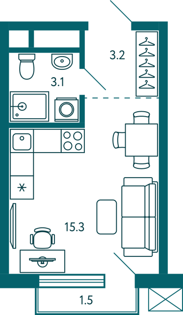Жилая площадь - 29,01 евро планировка