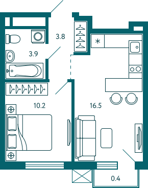 - Общая площадь: 21,6 кв.м.