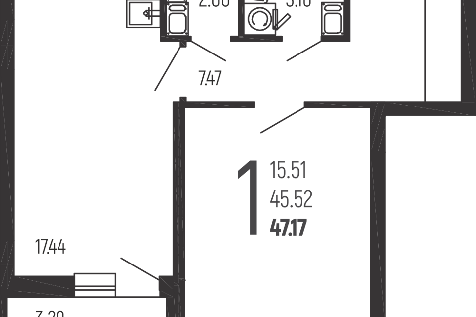 | 🟢 Площадь | от 26 до 68 м2. |
