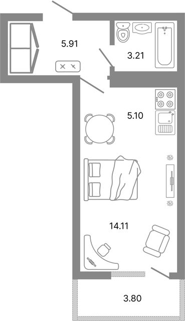 Жилая площадь - 29,01 евро планировка
