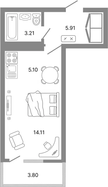 Продажа квартир-студий с балконом на Приморском бульваре