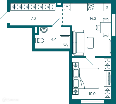 | 🟢 Площадь | от 34 до 70 м2. |