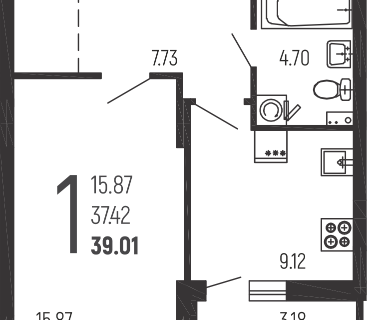 | 🟢 Площадь | от 34 до 46 м2. |