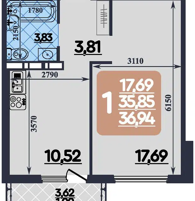 | 🟢 Площадь | от 35 до 46 м2. |